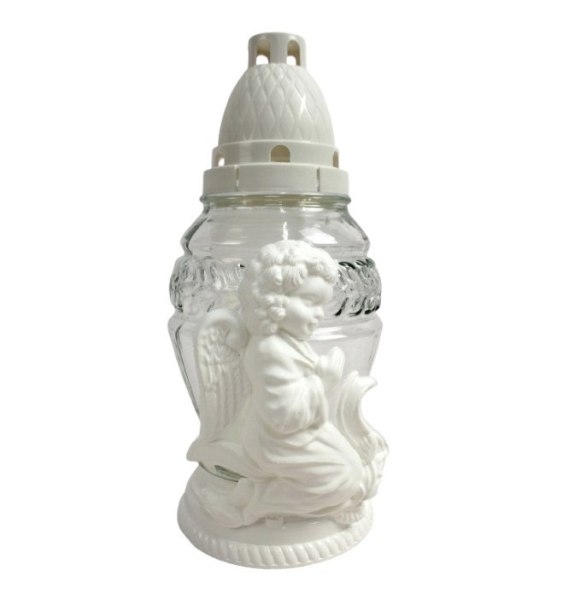 Znicz szklany Z 284 biały z aniołkiem 25 cm OMZ284