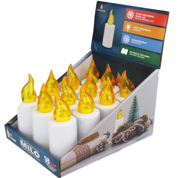 Znicz wkład led + baterie migotający żółty12 szt. MILO GRANDE
